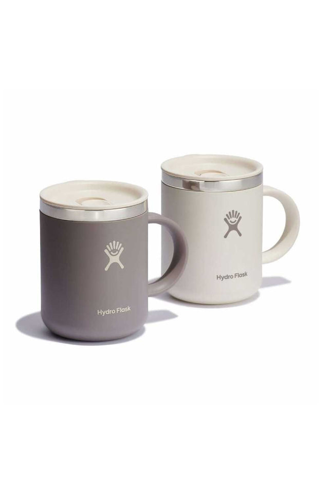 Two 12 oz Mugs to give or get in this perfect grab and go gift set for coffee, tea and cocoa lovers. Splash-resistant, closeable lids and a soft-touch exterior in neutral, goes-with-everything colors. Hot for hours guaranteed.
