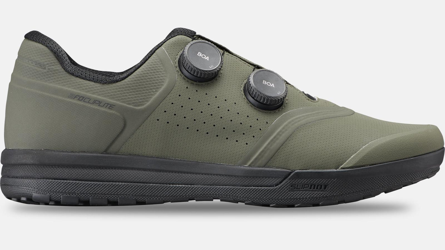 The 2FO Cliplite puts precision fit at your toe tips, providing unparalleled pedal input for on-trail control. The micro-adjustable BOA® Li2 dials combined with a welded upper provide a ridiculously comfortable fit. Built on a cushioned EVA foam midsole and relaxed fit last, the 2FO Cliplite keeps you locked in and cooled down for all-day riding without sacrificing off-the-bike comfort and style. The shoe rides on our SlipNot™ FG rubber sole delivering best-in-class pedal grip and connection when hitting full send. The 2FO Cliplite is perfectly adjusted for all-out trail speed.