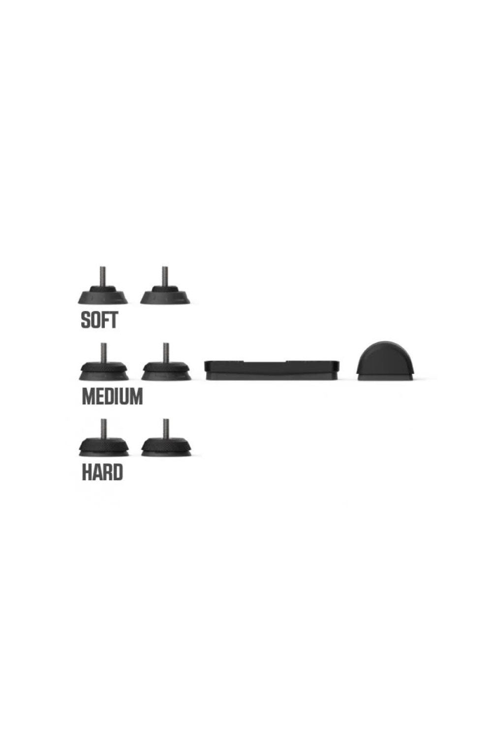 Whether mashing or spinning, riding in the saddle or out, KICKR AXIS feet let cyclists of all types customize the ride feel, enhance feedback, and experience a more realistic training setup by providing up to 5 degrees of side-to-side movement. KICKR AXIS feet enhance natural movement on the bike by minimizing pressure touchpoints, thus reducing fatigue and allowing you to train longer. KICKR AXIS comes with three stiffness options - easy, medium, and hard - so cyclists are able to to match their unique riding style and preferences.