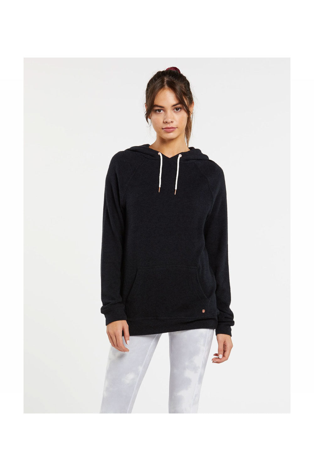 Pull on cute comfort with the Lived In Lounge Hoody. This cozy fleece style has a printed inner neck tape, rose gold trim and convenient kangaroo pocket.
